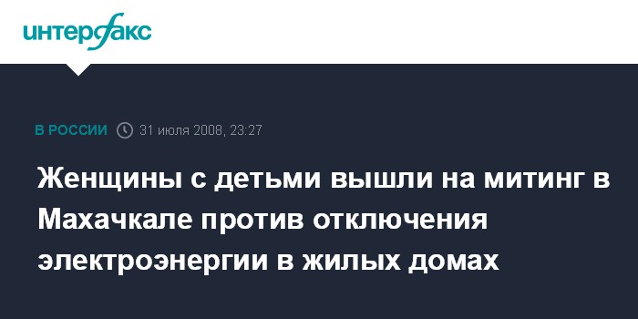 Ростов-на-Дону. 31 июля. ИНТЕРФАКС-ЮГ - Жители одного из крупных микрорайонов Махачкалы собрались на митинг, протестуя против продолжающихся отключений электроэнергии в жилых домах, сообщили агентству "Интерфакс-Юг" в правоохранительных органах города.