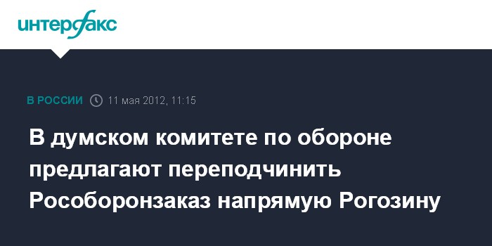 Москва. 11 мая. INTERFAX.RU - В комитете Госдумы по обороне считают целесообразным передать Рособоронзаказ из ведения Минобороны в прямое подчинение и.о. вице-премьера Дмитрия Рогозина.