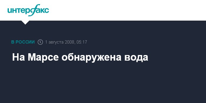 Москва. 1 августа. ИНТЕРФАКС - Американский космический аппарат "Феникс" обнаружил на Марсе воду, сообщил в ночь на пятницу телеканал "Вести 24" со ссылкой на ученого Уильяма Бойнтона из Университета Аризоны, руководящего миссией земного робота по обнаружению следов воды на Красной планете.