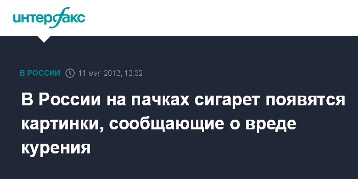 Москва. 11 мая. INTERFAX.RU - На пачках сигарет в России скоро будут печатать графические изображения, рассказывающие о вреде курения.