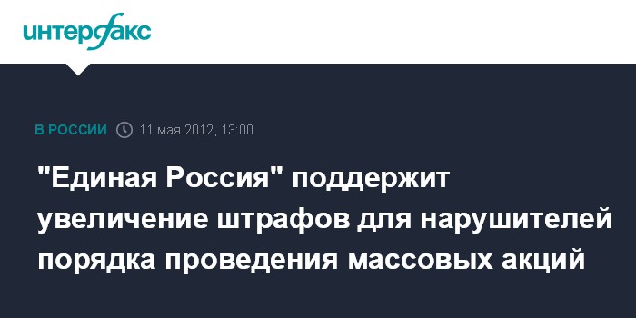 "Единая Россия" поддержит увеличение штрафов для нарушителей порядка проведения массовых акций