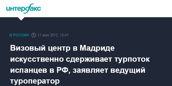 Визовый центр в Мадриде искусственно сдерживает турпоток испанцев в РФ, заявляет ведущий туроператор
