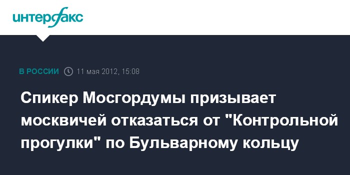 Москва. 11 мая. INTERFAX.RU - Председатель Мосгордумы Владимир Платонов призвал москвичей отказаться от участия в акции под названием "Контрольная прогулка", планируемой на Бульварном кольце 13 мая.