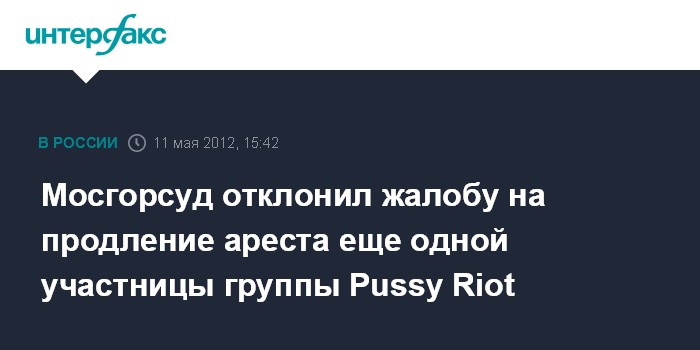 Мосгорсуд отклонил жалобу на продление ареста еще одной участницы группы Pussy Riot