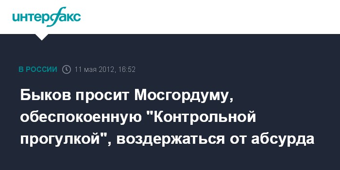 Быков просит Мосгордуму, обеспокоенную "Контрольной прогулкой", воздержаться от абсурда