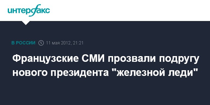 Париж. 11 мая. INTERFAX.RU - Во французских СМИ спутница новоизбранного президента страны Франсуа Олланда за бескомпромиссный характер получила прозвище "железная леди".