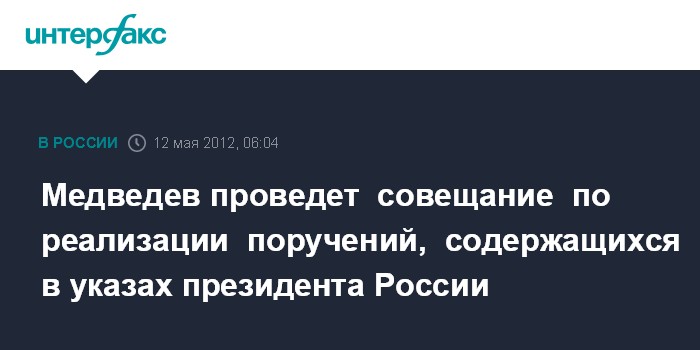 Медведев проведет совещание по реализации поручений, содержащихся в указах президента России