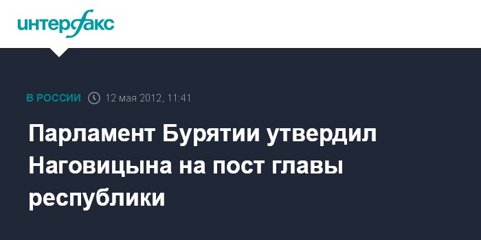 Чита. 12 мая. INTERFAX.RU - Народный хурал Республики Бурятия большинством голосов утвердил Вячеслава Наговицина в должности главы республики, сообщили агентству "Интерфакс-Сибирь" в республиканском департаменте.