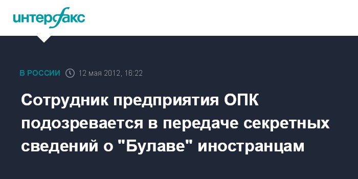 Сотрудник предприятия ОПК подозревается в передаче секретных сведений о "Булаве" иностранцам