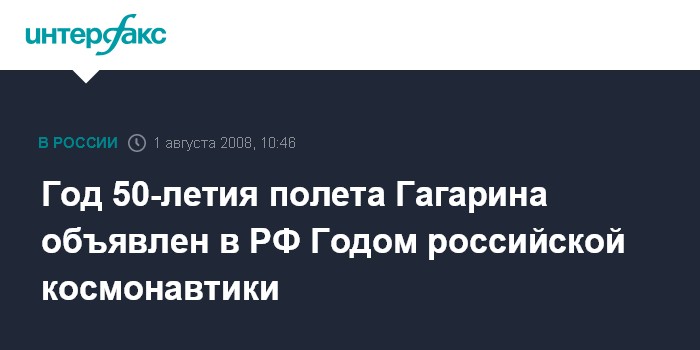 Год 50-летия полета Гагарина объявлен в РФ Годом российской космонавтики