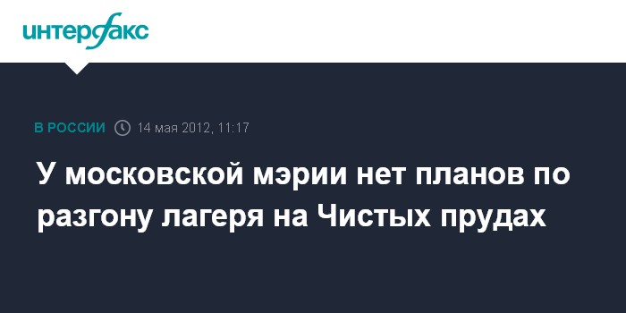Москва. 14 мая. INTERFAX.RU - В мэрии Москвы пока нет планов по разгону лагеря оппозиционеров на Чистых прудах.