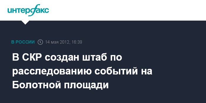 Москва. 14 мая. INTERFAX.RU - Расследовать обстоятельства массовых беспорядков 6 мая на Болотной площади в Москве будет специальный штаб под руководством первого замглавы СК РФ, сообщил официальный представитель СКР Владимир Маркин.
