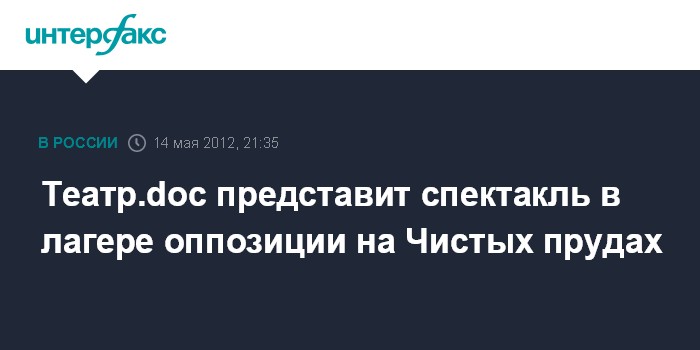Москва. 14 мая. INTERFAX.RU - Обитатели оппозиционного лагеря на Чистых прудах связывают прибытие значительных сил полиции в том числе и с тем, что на 23:00 намечен спектакль Театра.Doc.