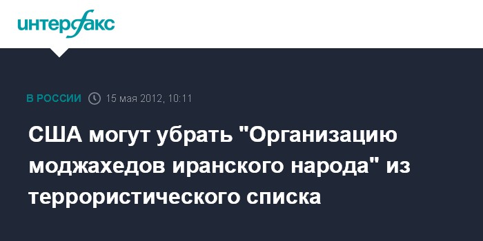 Тегеран. 15 мая. INTERFAX.RU - Госсекретарь США Хиллари Клинтон вскоре примет окончательное решение об исключении "Организации моджахедов иранского народа" (ОМИН) из списка террористических групп, сообщает во вторник иранский телеканал "Пресс ТВ".