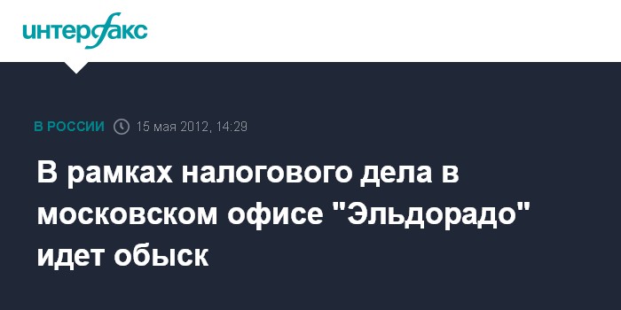 Москва.15 мая. INTERFAX.RU - Следователи СК РФ проводят обыск в офисе ООО "Эльдорадо", расположенном в Москве, в рамках уголовного дела об уклонении от уплаты налогов в особо крупном размере, сообщил "Интерфаксу" официальный представитель СК РФ Владимир Маркин.