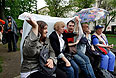 Импровизированный лагерь оппозиционеров и их сторонников возник на Чистых прудах у памятника казахскому поэту и просветителю Абаю Кунанбаеву после прошедшего 6 мая "марша миллионов". Число участников акции, получившей в интернете название "ОккупайАбай", колеблется от нескольких десятков ночью, до 2-3 тыс. в вечерние часы.