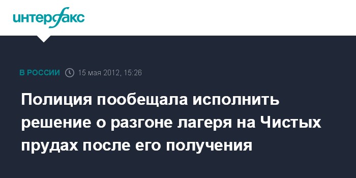 Москва. 15 мая. INTERFAX.RU - Решение Басманного суда о ликвидации лагеря оппозиции и наведении порядка на Чистопрудном бульваре будет исполнено в кратчайшие сроки, сообщил журналистам заместитель начальника УВД по ЦАО Владимир Ледовских.