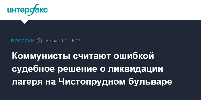 Москва. 15 мая. INTERFAX.RU - Депутаты Госдумы от КПРФ негативно отреагировали на решение суда о ликвидации лагеря оппозиции на Чистых прудах в Москве.