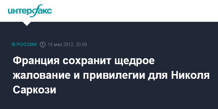 Лондон. 15 мая. INTERFAX.RU - Ушедший во вторник с поста президента Франции Николя Саркози будет получать щедрую пенсию, пожизненно пользоваться просторными апартаментами, услугами водителя и телохранителей за счет государства, пишет во вторник британская газета The Guardian.
