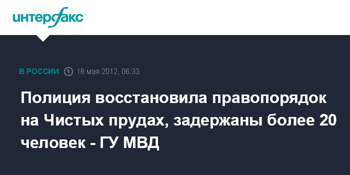 Москва. 16 мая. ИНТЕРФАКС - Столичная полиция восстановила правопорядок на Чистопрудном бульваре в Москве, освободив его от запрещенного судом лагеря оппозиции.