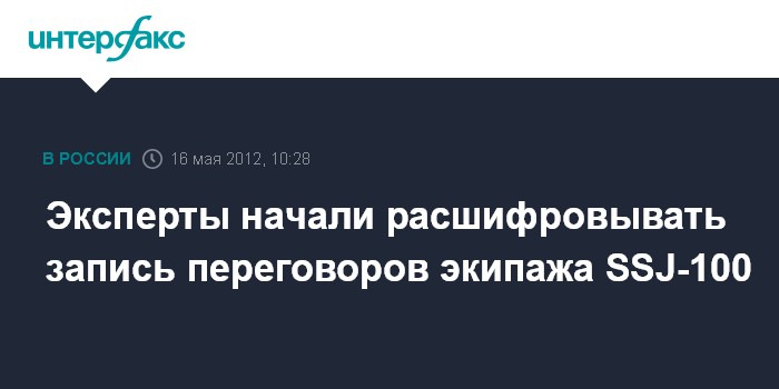 Москва. 16 мая. INTERFAX.RU - Комиссия по расследованию авиакатастрофы самолета Sukhoi SuperJet 100 (SSJ-100) приступила к расшифровке речевого бортового самописца, говорится в сообщении Минпромторга.