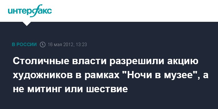 Столичные власти разрешили акцию художников в рамках "Ночи в музее", а не митинг или шествие