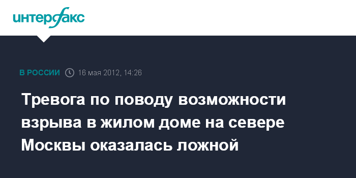 Тревога по поводу возможности взрыва в жилом доме на севере Москвы оказалась ложной