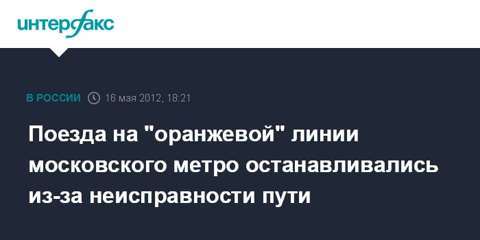 Поезда на "оранжевой" линии московского метро останавливались из-за неисправности пути