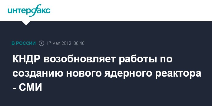 Сеул. 17 мая. INTERFAX.RU - КНДР возобновила строительство нового экспериментального реактора на легкой воде в своем главном ядерном комплексе, сообщают южнокорейские СМИ в четверг.