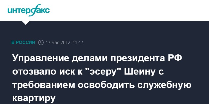 Управление делами президента РФ отозвало иск к "эсеру" Шеину с требованием освободить служебную квартиру