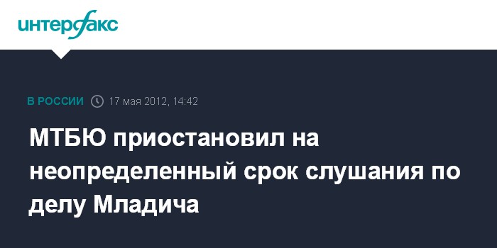 Лондон. 17 мая. INTERFAX.RU - Судебный процесс над бывшим командующим армией боснийских сербов Ратко Младичем приостановлен на неопределенный срок, сообщила BBC в четверг.