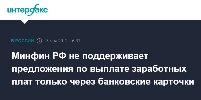 Минфин РФ не поддерживает предложения по выплате заработных плат только через банковские карточки