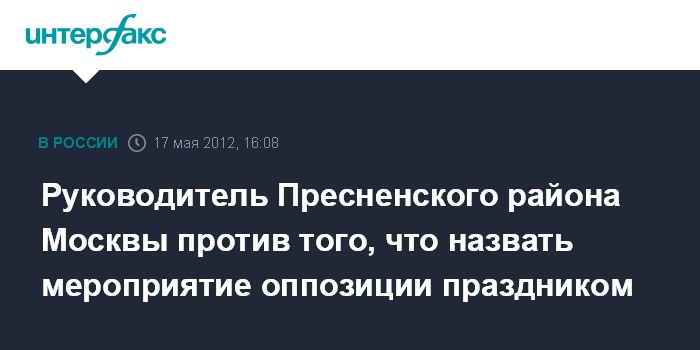 Руководитель Пресненского района Москвы против того, что назвать мероприятие оппозиции праздником