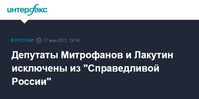 "На заседании бюро "Справедливой России" исключены из партии: Митрофанов - единогласно, Лакутин - при двух воздержавшихся", - написал Миронов в своем "твиттере" в четверг.