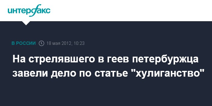 На стрелявшего в геев петербуржца завели дело по статье "хулиганство"