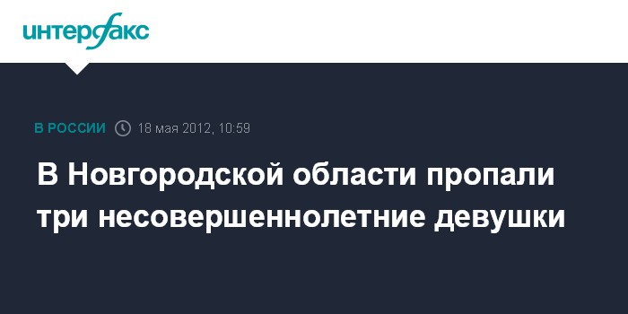 По словам источника, отдел уголовного розыска новгородской полиции объявил пропавшими без вести трех девушек 14, 16 и 17 лет. По предварительным данным три подруги пропали 13 мая, после посещения музея в Юрьево под Великим Новгородом. На телефонную связь с родителями девушки не выходят.