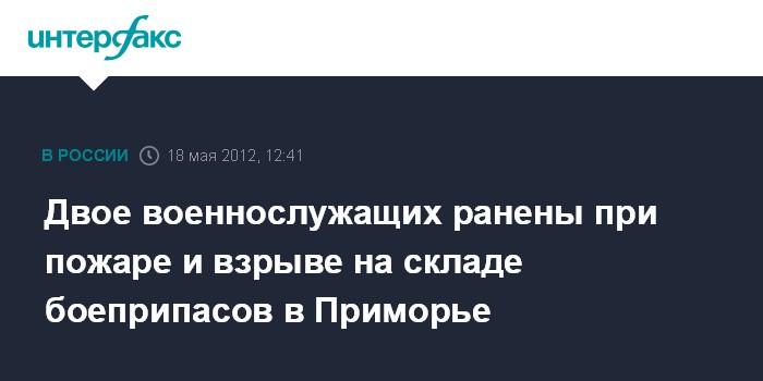 Москва. 18 мая. INTERFAX.RU - По данным Следственного комитета РФ, в результате взрыва и пожара на складе боеприпасов в Приморье пострадали двое военнослужащих.