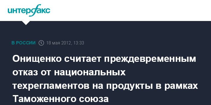 "Мы сейчас находимся в переходном состоянии. Есть регламент экономического Таможенного союза и вроде необходимость национальных регламентов отпадает, но я так не считаю", - подчеркнул Онищенко.