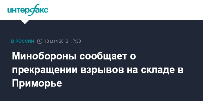 Москва. 18 мая. INTERFAX.RU - На месте пожара склада с боеприпасами в Приморском крае прекратились взрывы, сообщил "Интерфаксу-АВН" начальник управления пресс-службы и информации Минобороны РФ, полковник Игорь Конашенков.