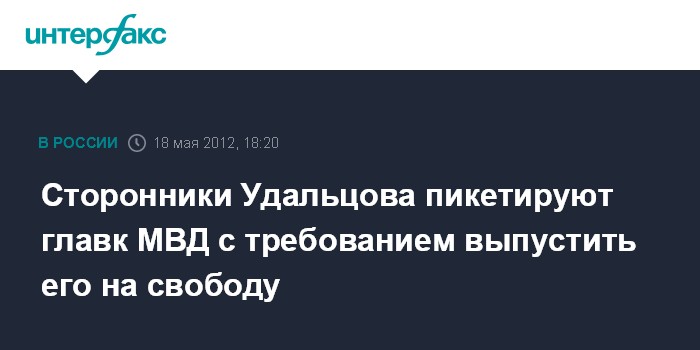 Москва. 18 мая. INTERFAX.RU - Одиночный пикет в поддержку арестованного лидера "Левого фронта" Сергея Удальцова проходит напротив ворот здания ГУ МВД России по Москве на улице Петровка.