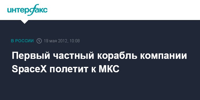 Лондон. 19 мая. INTERFAX.RU - Первый частный космический корабль отправится в субботу к международной космической станции. Он доставит на борт полтонны еды и оборудования, передает Би-би-си. Раньше МКС посещали только российские, американские, европейские и японские корабли, сконструированные на государственных предприятиях. Запускаемый аппарат собран компанией SpaceX.