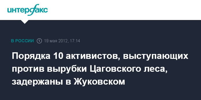 Жуковский. 19 мая. INTERFAX.RU - Около 10 человек задержаны в подмосковном Жуковском в субботу на мероприятии, которое организовали противники вырубки Цаговского леса, передает корреспондент "Интерфакса" с места событий. Среди задержанных - известный в Жуковском активист, антифашист Алексей Гаскаров.