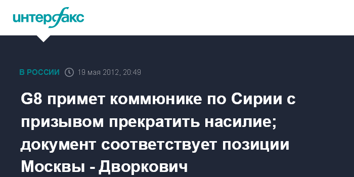 G8 примет коммюнике по Сирии с призывом прекратить насилие; документ соответствует позиции Москвы - Дворкович