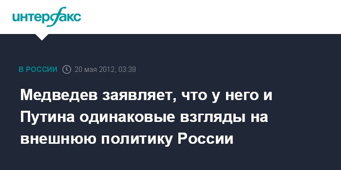 Медведев заявляет, что у него и Путина одинаковые взгляды на внешнюю политику России