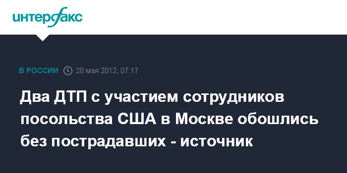 В результате аварии никто не пострадал, в Volkswagen Jetta находился аналитик по вопросам политики и экологии посольства США, отметил источник.