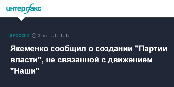 Москва. 21 мая. INTERFAX.RU - И.о. главы Росмолодежи Василий Якеменко заявил, что он объявил о старте нового политического проекта - создании "Партии власти".