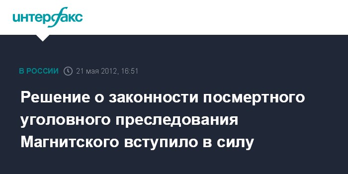 Решение о законности посмертного уголовного преследования Магнитского вступило в силу