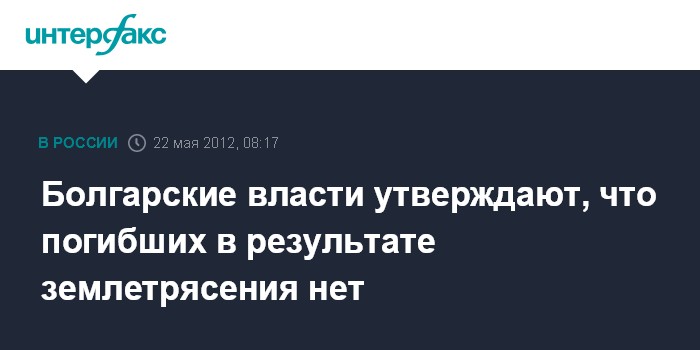 София. 22 мая. INTERFAX.RU - В результате землетрясения в Болгарии сообщений о жертвах не поступало, сообщил министр внутренних дел страны Цветан Цветанов. "Пока ничего не известно о жертвах или раненых, это хорошая новость", - сказал он местным СМИ. Премьер-министр Болгарии Бойко Борисов сказал журналистам: "Будем надеяться, что толчок не повторится. Я знаю, что люди в панике, но это вполне нормально".