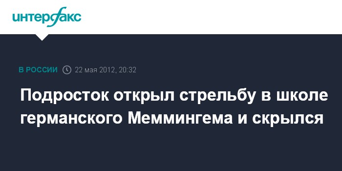 Берлин. 22 мая. INTERFAX.RU - Полиция города Меммингем на юге Германии разыскивает 14-летнего подростка, который открыл стрельбу в школе и затем скрылся, сообщили во вторник журналистам представители местной полиции.
