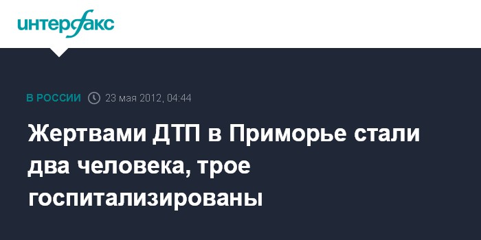Владивосток. 23 мая. ИНТЕРФАКС-ДАЛЬНИЙ ВОСТОК - Водитель и пассажир иномарки погибли в результате ДТП на трассе в Приморье, трое госпитализированы.